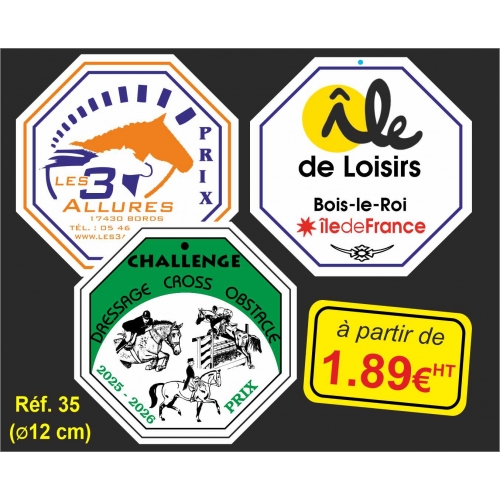PLAQUES PVC REF 35 DIAMETRE 12 CM IMPRESSION 2 COULEURS + BLANC