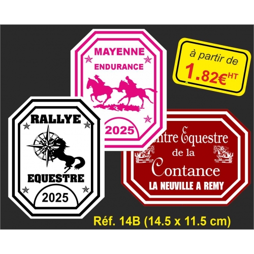 14,5 x 11,5 cm IMPRESSION 1 COULEUR Impression de textes et motifs de votre choix. Possibilité reproduction de votre sigle GRATUITEMENT. Pour repiquage des sponsors : nous contacter par téléphone